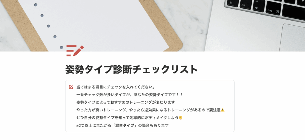 そこで私が用意したのが、「姿勢タイプ診断チェックリスト」です。